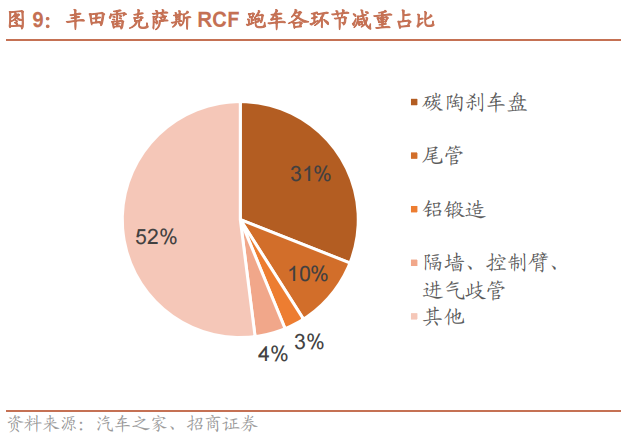 ¼õÇáÐü¼ÜϵͳÒÔÏÂÖÊÁ¿Ê°빦±¶£¬Ì¼ÌÕɲ³µÅÌΪ¼õÖ÷Òªº¦²¿¼þ ¡£ Ðü¹ÒϵͳÒÔÏÂÿ¼õÇá1kg£¬Ï൱ÓÚÐü¹ÒϵͳÒÔÉÏïÔÌ­5kgµÄЧ¹û ¡£Ò»¶Ô380mm³ß´çµÄ̼ÌÕÅÌͬ±È»ÒÖýÌúÖÆ¶¯Å̵ÄÖØÁ¿ÇáÔ¼20kg£¬Ï൱ÓÚÔÚÆû³µÐü¹ÒϵͳµÖ´ïÁ˼õÖØ100kgµÄЧ¹û ¡£±ðµÄ£¬·áÌï¸ß¶ËÅܳµÀ׿ËÈøË¹RCFÔøÍ¨¹ýCFRPÖÊÁϺÍ̼ÌÕÖÆ¶¯Å̾ÙÐÐ¶à·½Ãæ¼õÖØ70kg£¬ÆäÖÐ22kgÓÉ̼ÌÕɲ³µÅÌТ˳£¬Òò´Ë̼ÌÕɲ³µÅÌΪÆû³µ¼õÖØµÄÒªº¦Á㲿¼þ ¡£
