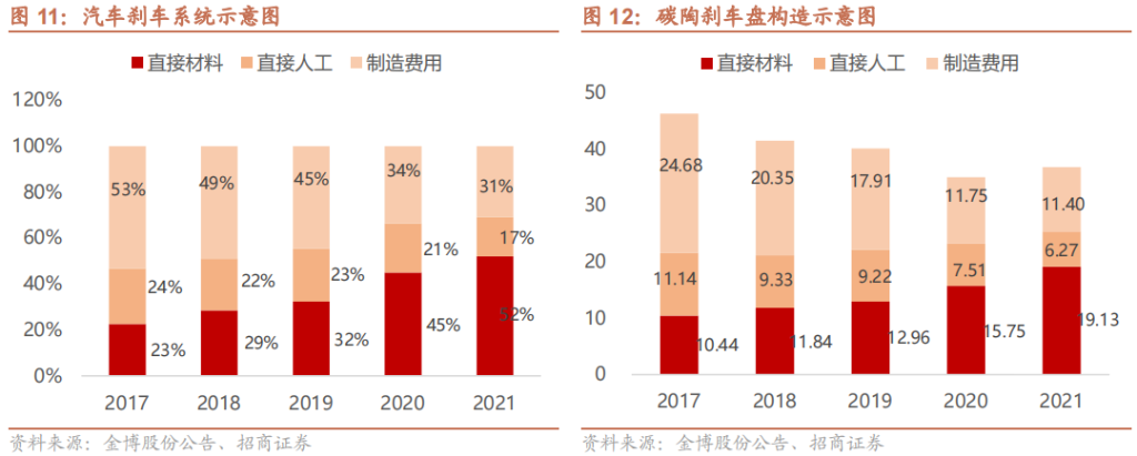 ²úÆ·Ö±½ÓÖÊÁϱ¾Ç®Õ¼½ÏÁ¿µÍ£¬±£´æ½Ï´óÊÖÒÕ¡¢¹æÄ£½µ±¾¿Õ¼ä ¡£ÒԽ𲩹ɷÝΪÀý£¨¹«Ë¾ËùÓвúƷϵ̼̼¸´ºÏÖÊÁÏ£¬±¾Ç®½á¹¹´ú±íÐÔ½ÏÇ¿£© ¡£2021Ä깫˾Èȳ¡ÏµÁвúÆ·µ¥¶Ö±¾Ç®Îª37ÍòÔª/¶Ö£¬½Ï2017ÄêµÄ46ÍòÔª/¶ÖϽµÁË20%£¬2021Äêµ¥¶ÖÖÆÔìÓöÈΪ11.40ÍòÔª£¬½Ï2017ÄêµÄ24.68ÍòԪϽµÁË53.8%£¬ÊÖÒÕ½µ±¾ÏÔÖø£¬2021ÄêÔ­ÖÊÁϱ¾Ç®Õ¼±ÈΪ52%£¬Ëæ×ʿģÀ©´ó¡¢ÊÖÒÕÉý¼¶¡¢×Ô¶¯»¯Ë®Æ½ÌáÉýºÍ̼ÏËά¼ÛǮϽµ£¬²úÆ·µÄ½µ±¾¿Õ¼äÖØ´ó ¡£Ä¿½ñ̼ÌÕɲ³µÆ¬µ¥Æ¬¼ÛǮԼ2500-3500Ôª£¬¶ÔÓÃC¼¶¼°ÒÔÉϳËÓóµÊг¡£¬ÎÒÃÇÔ¤¼Æ2025Ä굥Ƭ¼ÛÖµÓÐÍûϽµµ½1000-1200Ôª×óÓÒ£¬½«ÏÂ̽µ½B¼¶¼°ÒÔÉϳËÓóµÊг¡ ¡£